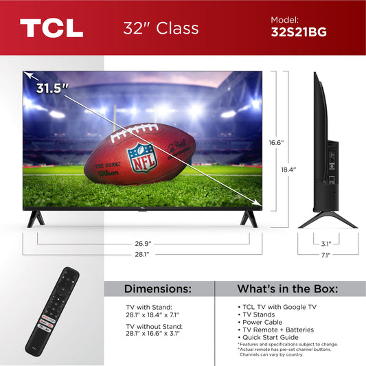 32" Class S2 (32S21BG) 720P HD LED Smart TV with Google TV